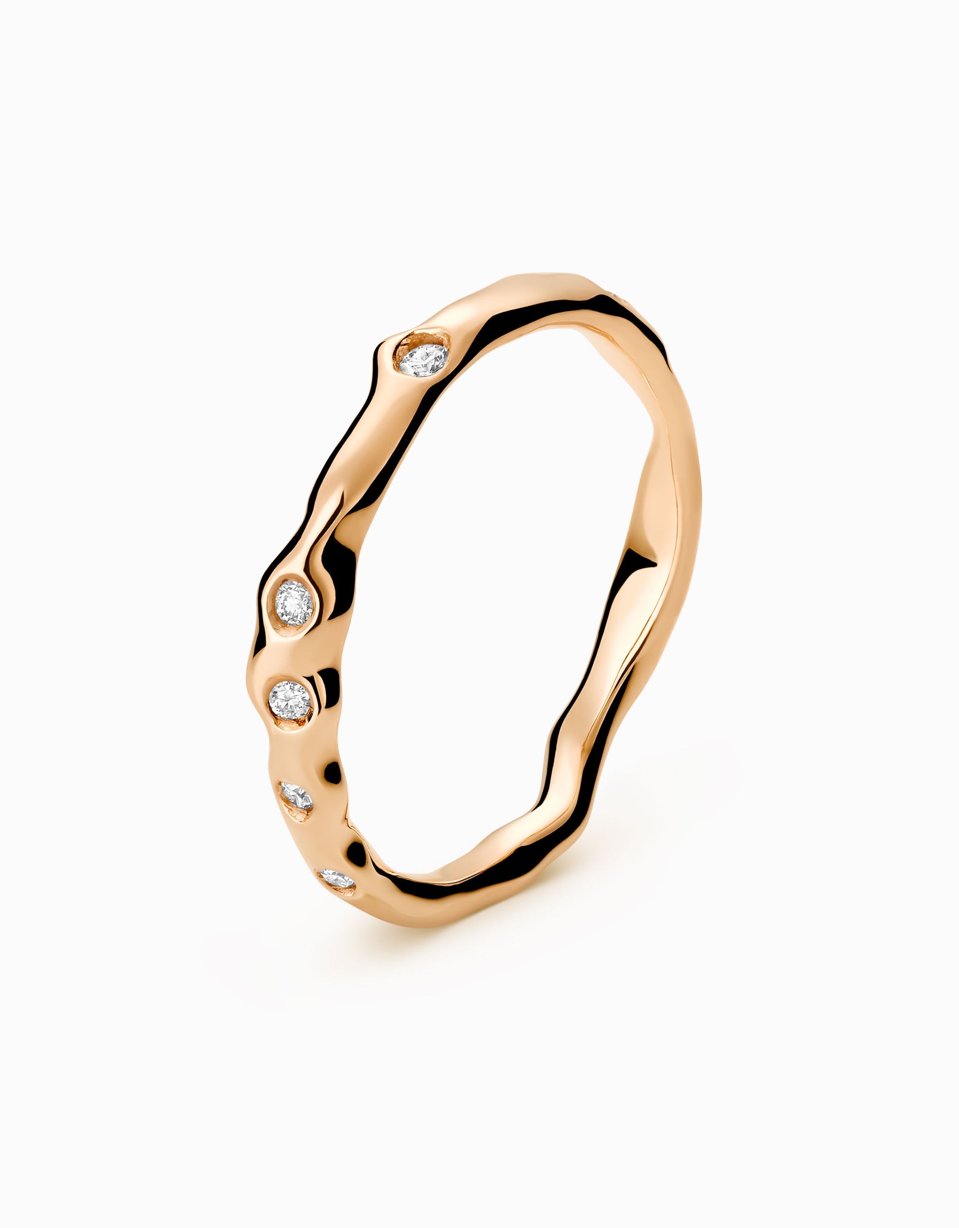 Aquest anell destaca per les formes irregulars i orgàniques que evoquen la tija d'una flor o la branqueta d'un arbre. Ens trobem davant d'una joia que fa un homenatge a la natura.