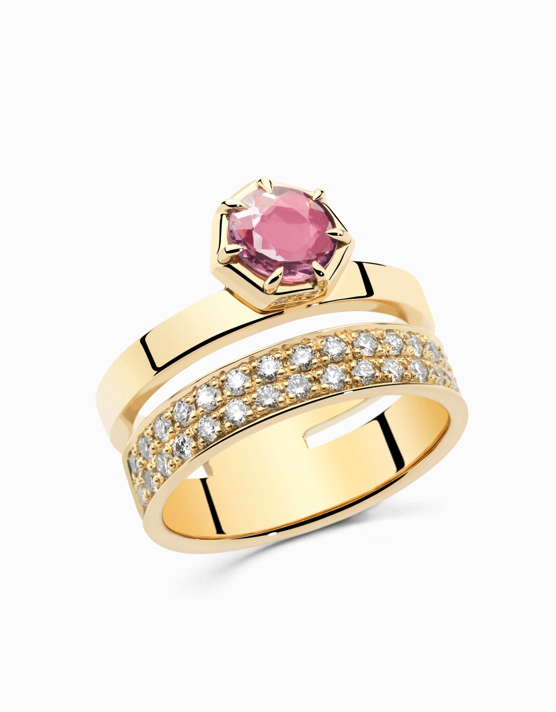 Sobre la pell, la delicadesa del sàfir rosa i l’esplendor de l’or dibuixen una obra d’art única en tu.