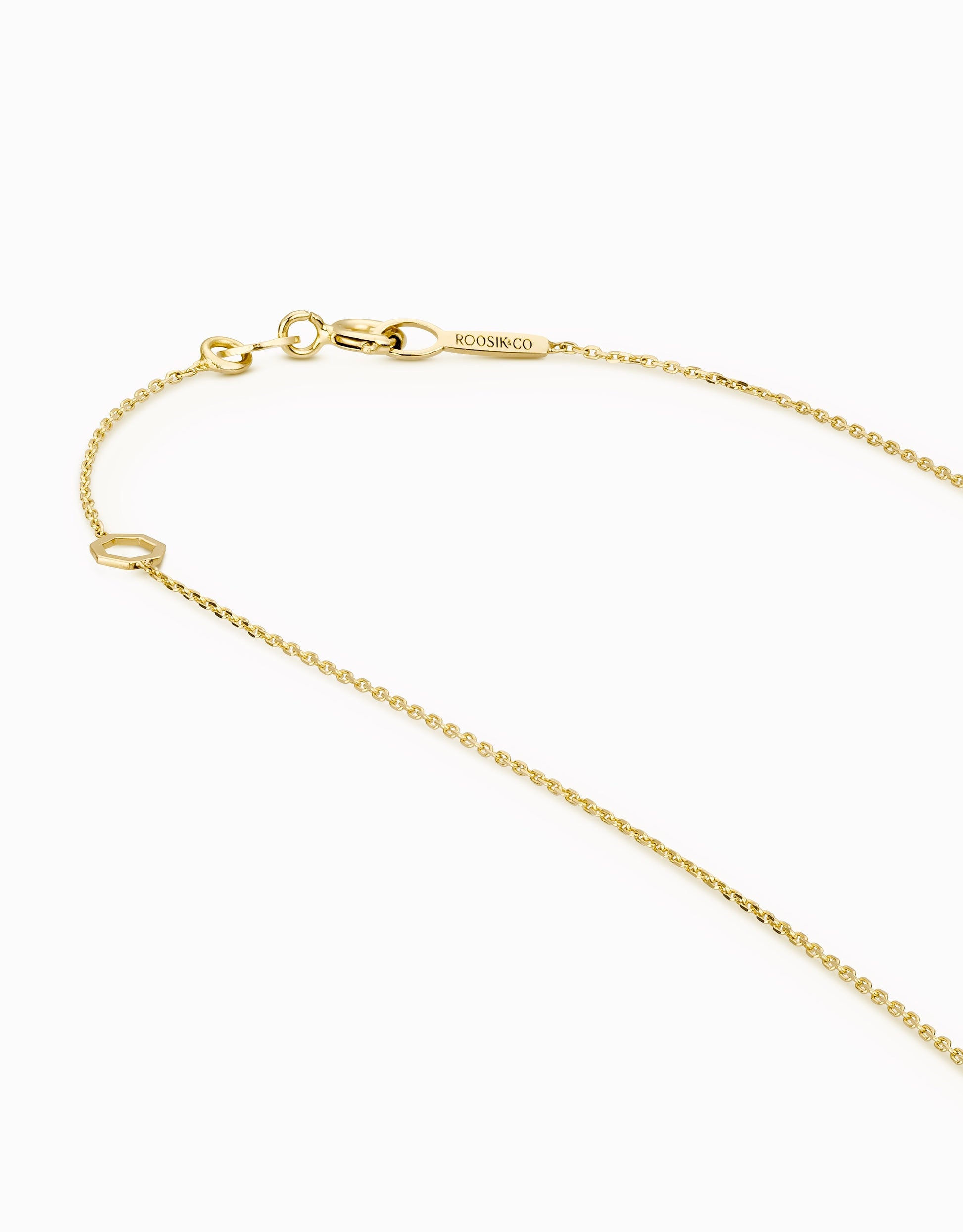 El motiu Heptàgon és la icona corporativa de la marca de joieria d’autor Roosik&Co. A la col·lecció Heptasik, Jordi Rosich -dissenyador i autor de les joies de Roosik&Co.- ha fet del motiu Heptàgon l’eix central de la col·lecció. En aquest cas, l’heptàgon embolcalla un diamant de 0,10ct, color E, grau de puresa VVS1, decisió que converteix aquest penjoll en un complement molt especial que encaixarà perfectament amb una dona contemporània. El penjoll amb motiu Heptàgon i diamant es treballa en or groc, rosa i blanc.