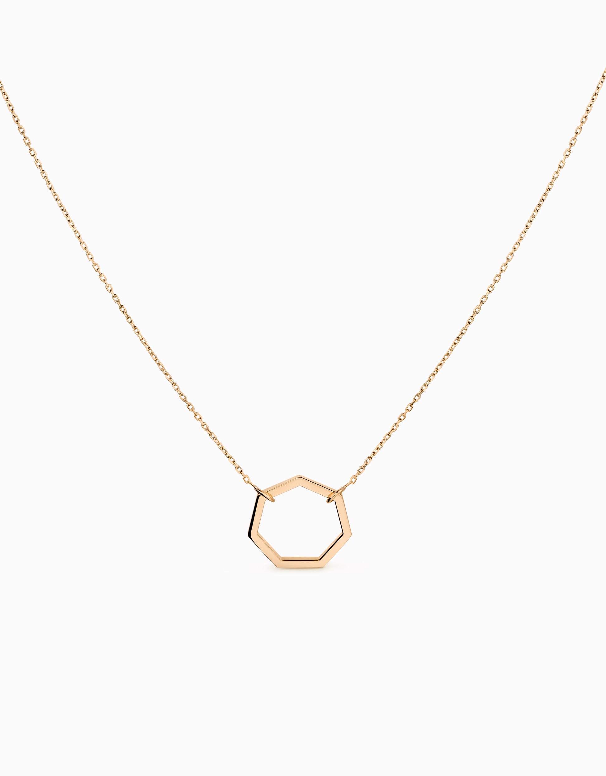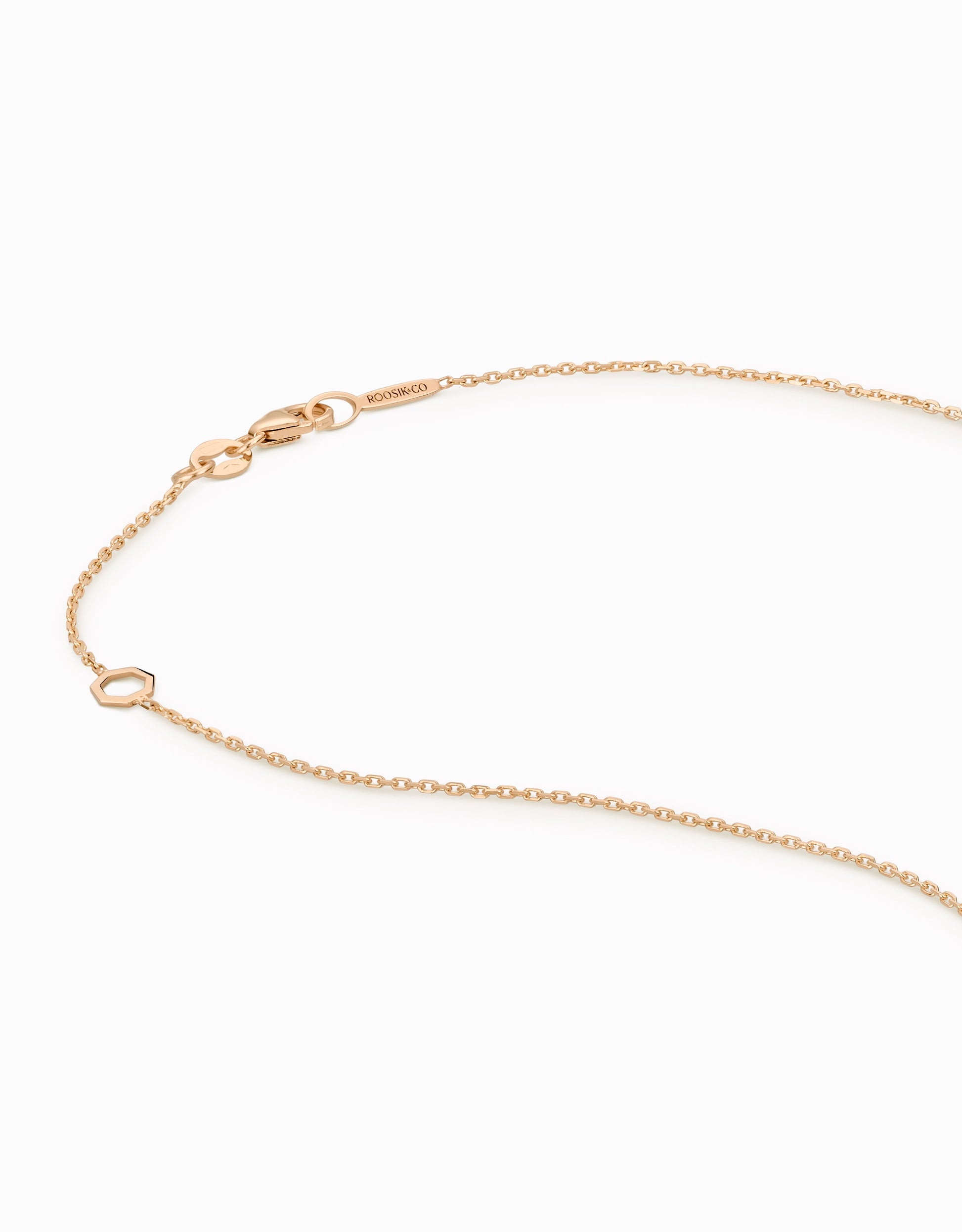 El motiu Heptàgon és la icona corporativa de la marca de joieria d’autor Roosik&Co. A la col·lecció Heptasik, Jordi Rosich -dissenyador i autor de les joies de Roosik&Co.- ha fet del motiu Heptàgon l’eix central de la col·lecció. En aquest penjoll, Rosich ha plantejat l’Heptàgon a la inversa, en subjectar-lo, de forma molt original, des de dos dels seus vèrtexs. Aquesta decisió converteix aquest penjoll en un complement molt especial i un punt atrevit, que encaixarà perfectament amb una dona contemporània. El penjoll d’or rosa amb motiu Heptàgon de 16 mm. es treballa en or blanc i groc.
